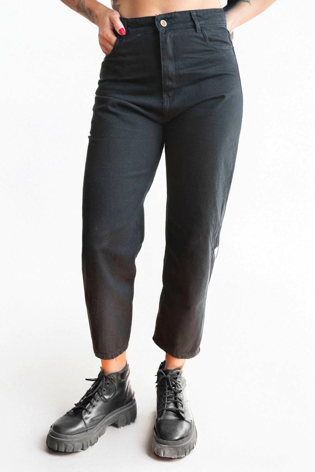 Jean MOM negro con calce cómodo y tela resistente. Confeccionado por cooperativas textiles, pensado para uso diario y larga duración.